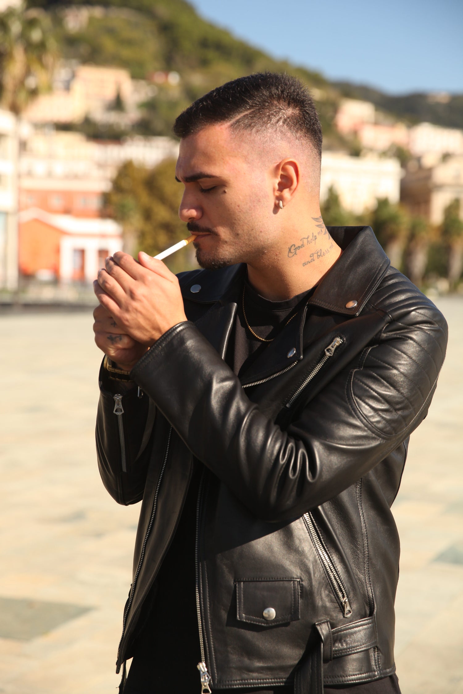 Questo capo in vera pelle da uomo nasce dalle mani esperte dei nostri artigiani. Ogni cucitura racconta una storia di carattere, precisione e passione.